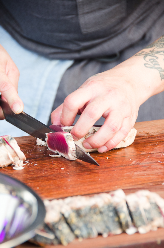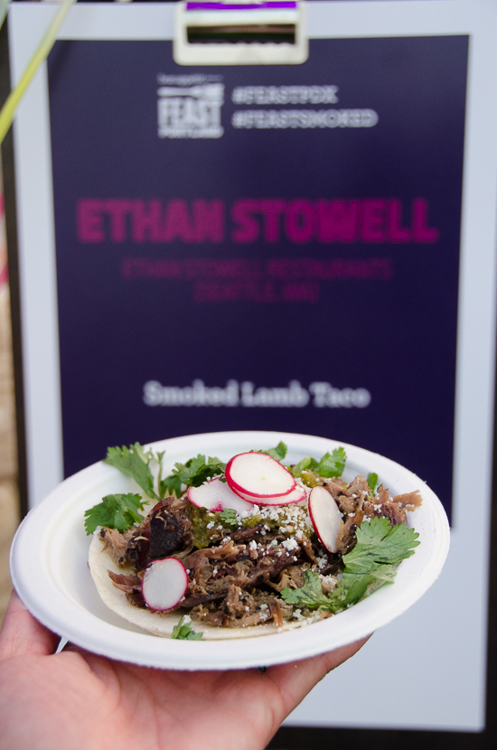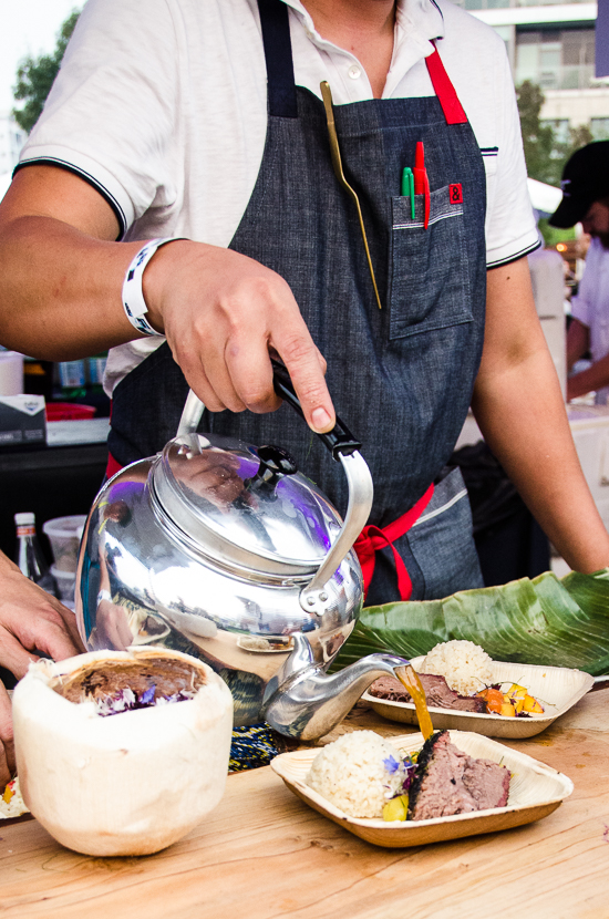 The highlights from this year’s Grand Tasting included more substantial bites from Chef Earl Ninsom (Langbaan, PaaDee) with his Coppa with Seasonal Fruit and Papaya Salad, and Los Angeles Chef Ray Garcia (Broken Spanish) Charred Brussels Sprouts, Mole Blanco, Habanero and Peanuts. The two were putting Finex cast iron to work in Williams Sonoma’s booth at the event. Local tea purveyor Smith Teamaker brought a new ready-to-drink chai to sample and spotlighted their Arbequina Oolong, a Feast special collaboration tea with Chef Tom Douglas.