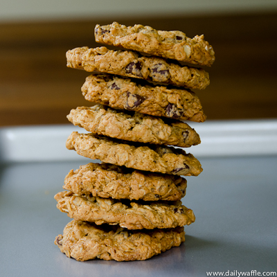 Back of the bag recipes have sustained us for ages. Our grandmothers clipped recipes from paper board cylinders of oatmeal, from the backs of chocolate chip bags, and ordered recipe booklets from Betty Crocker and Jello. Some of those recipes stand the test of time because manufacturers just keep putting them on the packages, like the Toll House chocolate chip cookie recipe. But others are lost to the ages because there was no where else to get them. It’s in that spirit that I’m bringing you these cookies from the back of the Trader Joe’s Rolled Oats bag. (And we all know how transitory products can be at Trader Joe’s.)